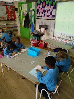 We have had one session a week where Ms Sharkey comes in to our class she takes one groupand works on letter names and teacher takes another group and works on letter sounds. The third group works on an independent writing activity and we get a turn to do all the activities. We are really improving at our letter names and sounds. We have been revising for the month of December but will be learning new sounds again in January.